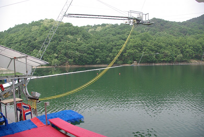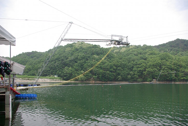 저기 노란 줄을 잡고 보드를 타는겁니다~